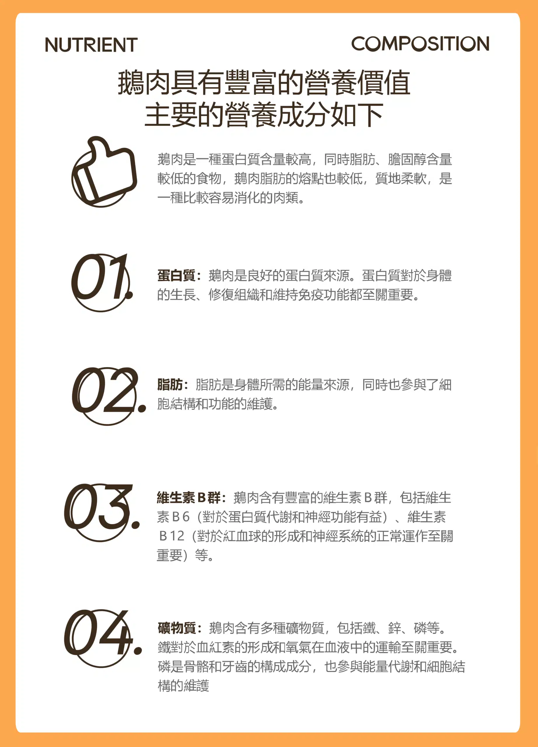 我們堅持挑選來自優質產地的白羅曼鵝,這種品種的鵝以其肉質鮮嫩、脂肪分布均勻而著稱。經過專業飼養與細心餵養,確保每一隻鵝的健康和品質達到最高標準,為您帶來最優質的食材體驗。