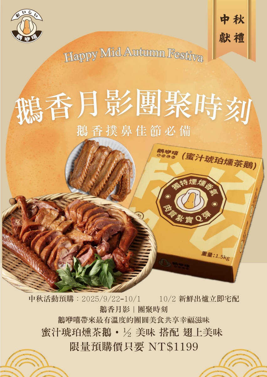 【鵝香月影團聚時刻|2025中秋限定預購】 佳節將至,少不了一桌團圓美味。鵝咿嘻特別推出中秋限定組合,將煙燻茶香與經典滷..